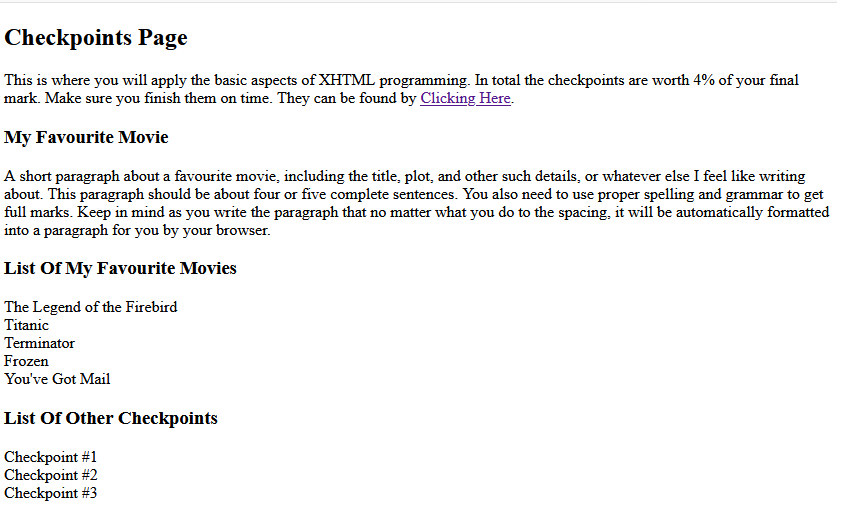 Next, you will create two lists, one for a list of your favourite movies and one for a list of the other checkpoints. However, as mentioned above, if you try to just make lists on your notepad using the enter key, the browser will automatically