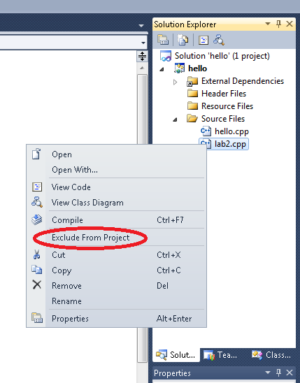 To do this in Visual Studio, right click on lab2.cpp under the solution