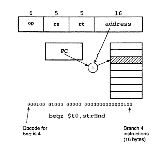 The meaning of the different parts in each format: op - 6-bit operation code rs - 5-bit source register specifier rd - 5-bit destination register specifier rt - 5-bit target (source/destination) register or branch condition immediate - 16-bit immediate branch displacement or address displacement target - 26-bit jump target address shamt - 5-bit shift amount funct - 6-bit function fieldThere are different MIPS addressing modes. We have already seen some examples in the previous labs.